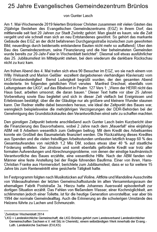 25 Jahre Evang. Gemeindezentrum Brünlos